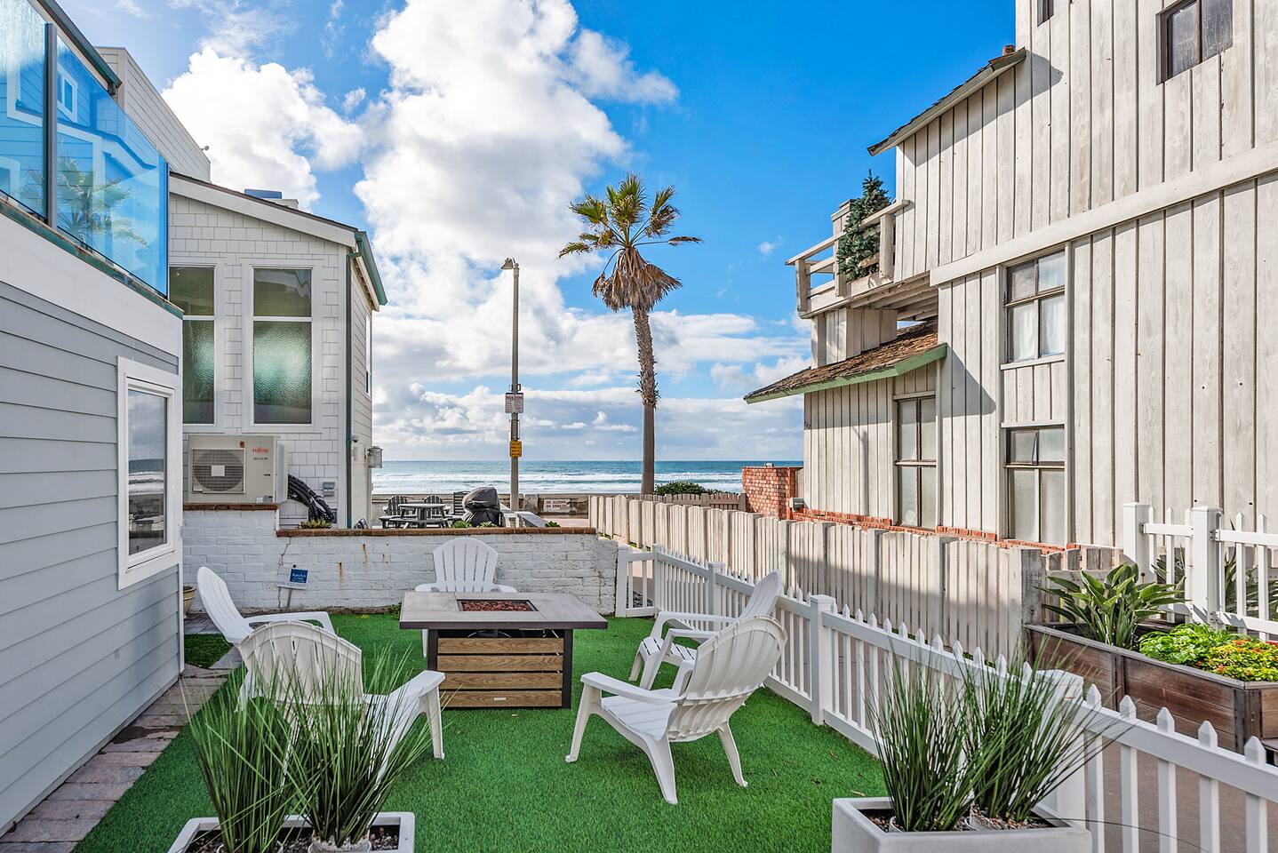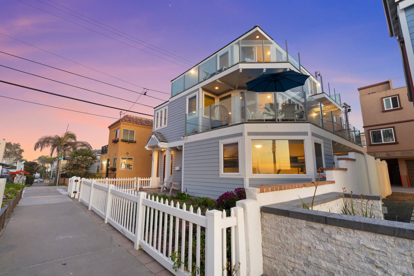 Amazing 3-Story Home in the Heart of Mission Beach 30 steps off the Beach. Prime location. Between Belmont Park and Pacific Beach. Walk to restaurants, bars and cafes. Watch and Listen to Waves from all Rooms and Bedrooms. Privacy- 1 house off the Famous Boardwalk. 2 Upstairs Bedroom Suites with Private Bathrooms and Balconies. 3 Decks Overlooking the Ocean. 270 degree views of city and bay too. Central AC! Fire Pit Lots of Parking- 2 car garage, 1 car carport, and parking spot in front.