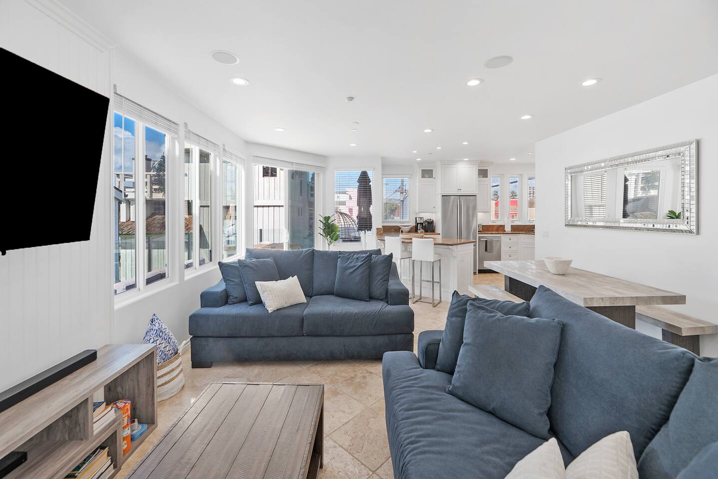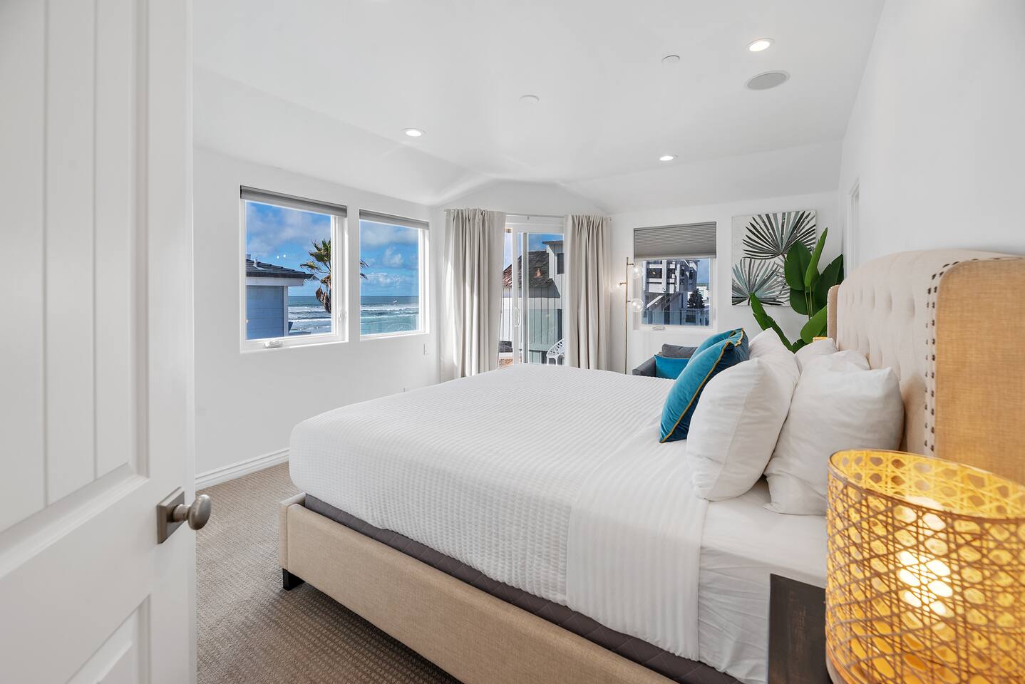 Welcome to our beachfront paradise in Mission Beach, San Diego! Our luxurious property is the perfect place to relax and unwind, surrounded by the beautiful ocean and the vibrant energy of the city. Our property features a modern and chic design, with 3 bedrooms and 3.5 bathrooms. The bedrooms are outfitted with plush beds, making for a comfortable and restful night's sleep. The living room is designed to be a cozy and inviting space, perfect for lounging and taking in the stunning ocean views. The fully-equipped kitchen has all the modern appliances you need to cook up a delicious meal while enjoying the ocean breeze. The real highlight of our property is the balcony where you can soak in the sun and enjoy the beautiful ocean view. Imagine sipping your morning coffee or evening cocktails while watching the waves roll in, the sound of the ocean in the background. We are located in the heart of Mission Beach, where you can enjoy the famous boardwalk, bike paths and the famous Belmont Park, a classic beachfront amusement park. We're also just a short walk from Pacific Beach, where you'll find plenty of delicious restaurants, bars, and shops. The property also includes free Wi-Fi, so you can stay connected while enjoying your beach vacation. Whether you're looking for a romantic getaway or a fun-filled family vacation, our beachfront property in Mission Beach has something for everyone. We look forward to hosting you in our paradise! We are a top choice for our guests visiting for San Diego Padres Game, PGA events at Torrey Pines, San Diego State and University of San Diego events. Elevator access upon request for individuals with mobility issues.