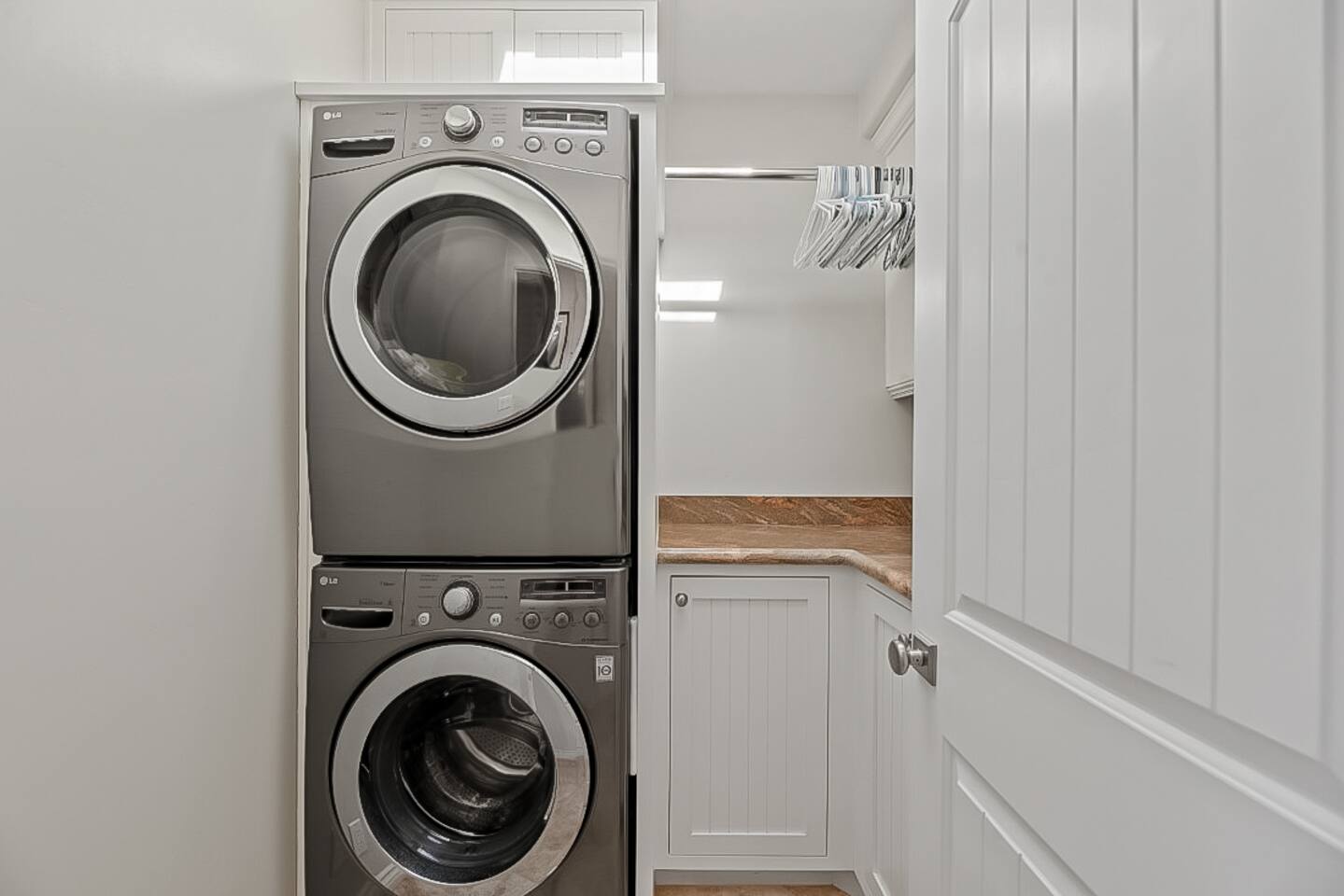Electronic lock access, two car side by side garage with an extra three outdoor parking spots on the property. Garage Dimensions: 14’w x 13’d x 7’4”t Carport: 8’w x 18’d x 7’6”t Front Carport: 17'd (DO NOT move the planters on the turf to fit a larger vehicle. Moving the planters on the turf will result in a fine.) The home boasts approximately 1987 sq ft of indoor living space.